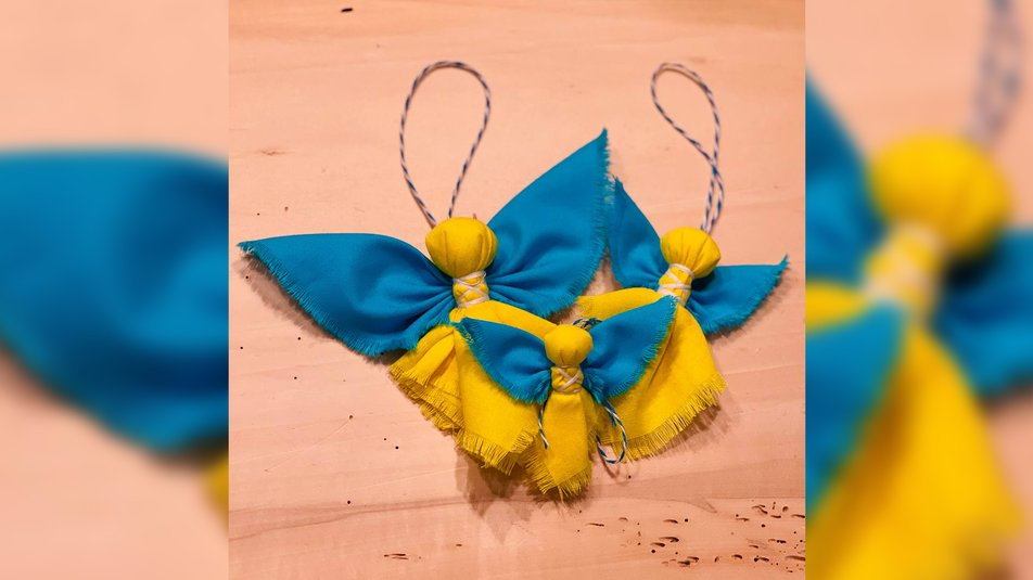 Украинские дети, оказавшиеся из-за войны в Швейцарии, создают сине-желтые обереги, которые раздают на акциях в поддержку нашей страны, полученные деньги направят на помощь черниговским школам.